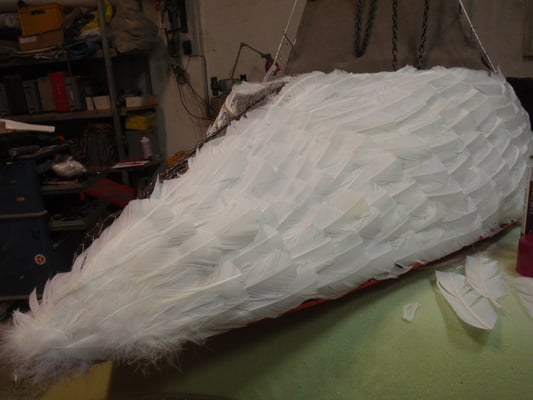 Kreation eines 2 Meter hohen High Heels,zum 5 Jahr Jubiläum von dem Partylabel Ü178. Der Schuh wurde mit Federn überzogen.