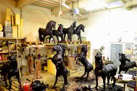 Am White Turf 2011 auf dem gefrorenen St. Moritzersee standen Pferde nicht nur im Renngeschehen im Mittelpunkt. Um den hochkarätigen Winterevent mit Kunstobjekten zu bereichern, wurde eine Serie plastischer Pferde-Skulpturen aus dem aussergewöhnlichen Material Bitumen geschaffen, die im VIP-Bereich ausgestellt wurden. Die pechschwarzen, stämmigen Figuren sind Sinnbild und Ausdruck der archaischen Kraft und Eleganz dieser energetischen Tiere. Die Wahl des heiss zu verarbeitenden Materials Bitumen – ein aus Erdöl sowie Gestein gewonnenes, zähflüssiges Destillat, das bereits vor 6000 Jahren in der Kunst und heute vorwiegend für den Strassenbau eingesetzt wird – lag für den Künstler auf der Hand, bzw. der Strasse. Pferdestärken spielen in der mobilen Welt eine tragende Rolle, wie Erdöl und Bitumen als deren Antriebsmittel und Strassenunterlage. Daraus resultiert eine Faszination der Gegensätze, die sich in einer Schwarz-Weiss-Wahrnehmung, in Hitze und Kälte, in Bitumen und Schnee wiederspiegelt. Dem Glanz und Glamour des Endprodukts steht der handwerklich aufwändige Entstehungsprozess im Atelier gegenüber. Was bleibt ist die ungeschminkte Authentizität eines Werks.